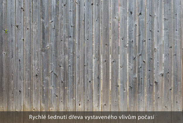 - rychlé „šednutí“ dřeva vystaveného vlivům počasí - dřevo bylo ošetřeno bezbarvou lazurou bez UV filtrů nebo nedostatečně tlustou vrstvou nátěru