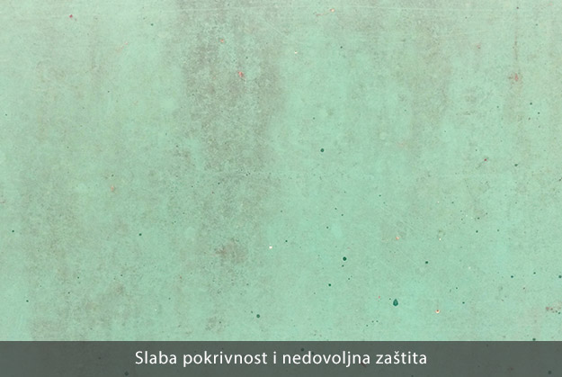 - slaba pokrivnost i neadekvatna zaštita – boja je bila previše retka, boja je bila preterano razređena