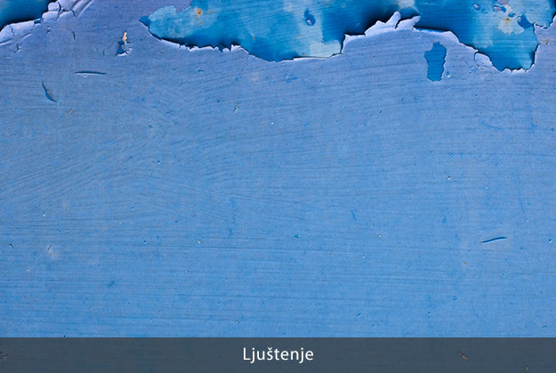 - ljuštenje – površina je bila nedovoljno očišćena, a stari premazi koji više nisu prianjali za površinu bili su loše uklonjeni, alati su nedovoljno očišćeni, nije korišćen odgovarajući osnovni premaz