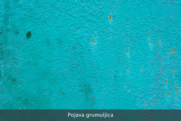 - loše prianjanje premaza – površina je nedovoljno očišćena, postoje masnoće, rđa i ostaci sredstva za uklanjanje boje, na površini postoji kondenzovana vodena para