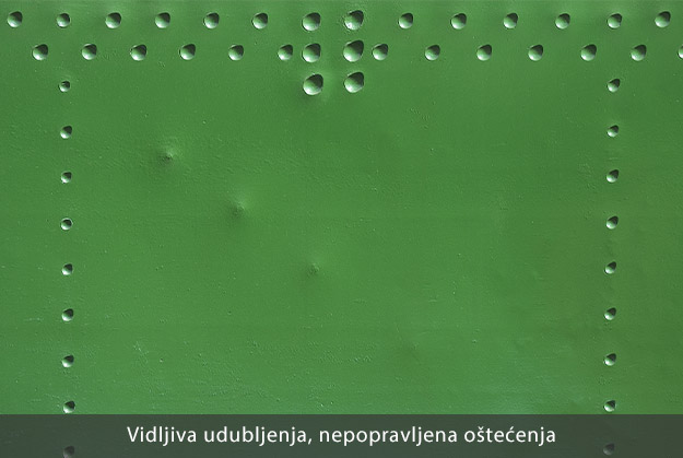 - vidljiva udubljenja ispod boje – oštećenje na površini nije bilo popravljeno